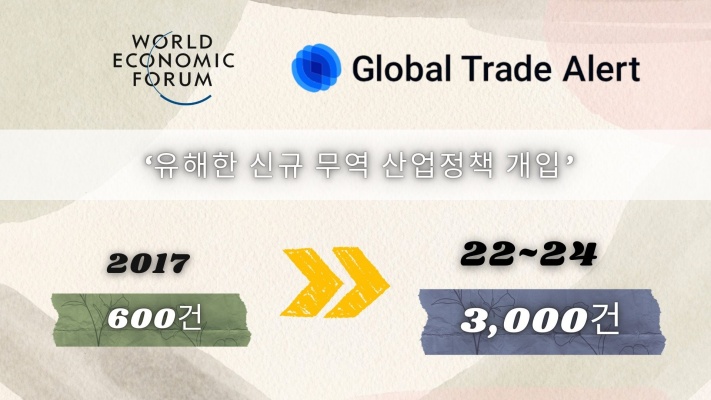 WEF는 Global Trade Alert 자료를 인용해 ‘유해한(harmful) 신규 무역·산업정책 개입’이...