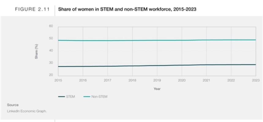 • STEM 분야에서 여성 비율은 약 27~29% 수준
